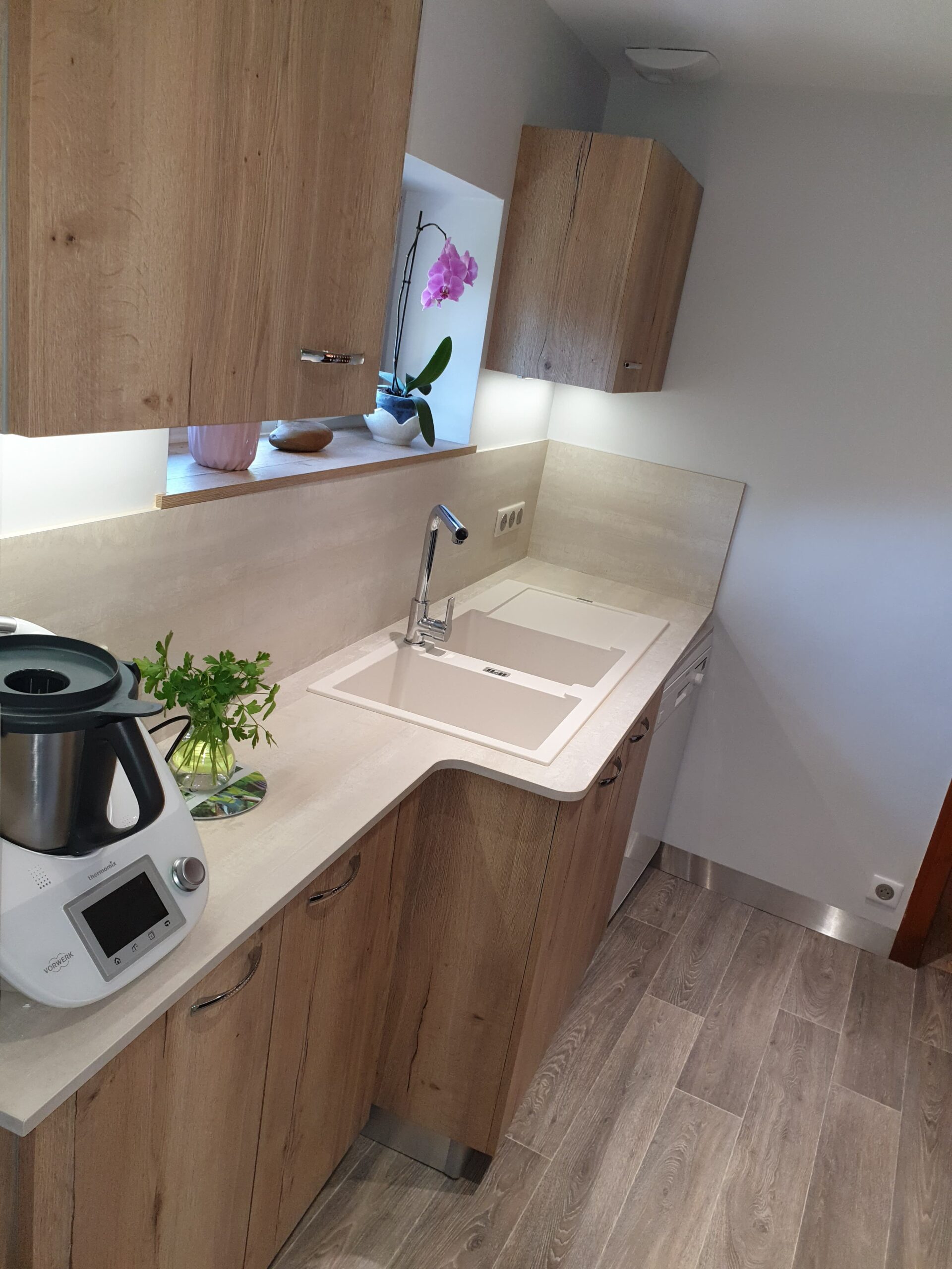 Chaque projet est l’occasion de mettre en œuvre notre savoir-faire artisanal : ajustements sur mesure, optimisation des espaces, soin du détail. Parce qu’une belle cuisine, c’est avant tout une cuisine bien pensée.